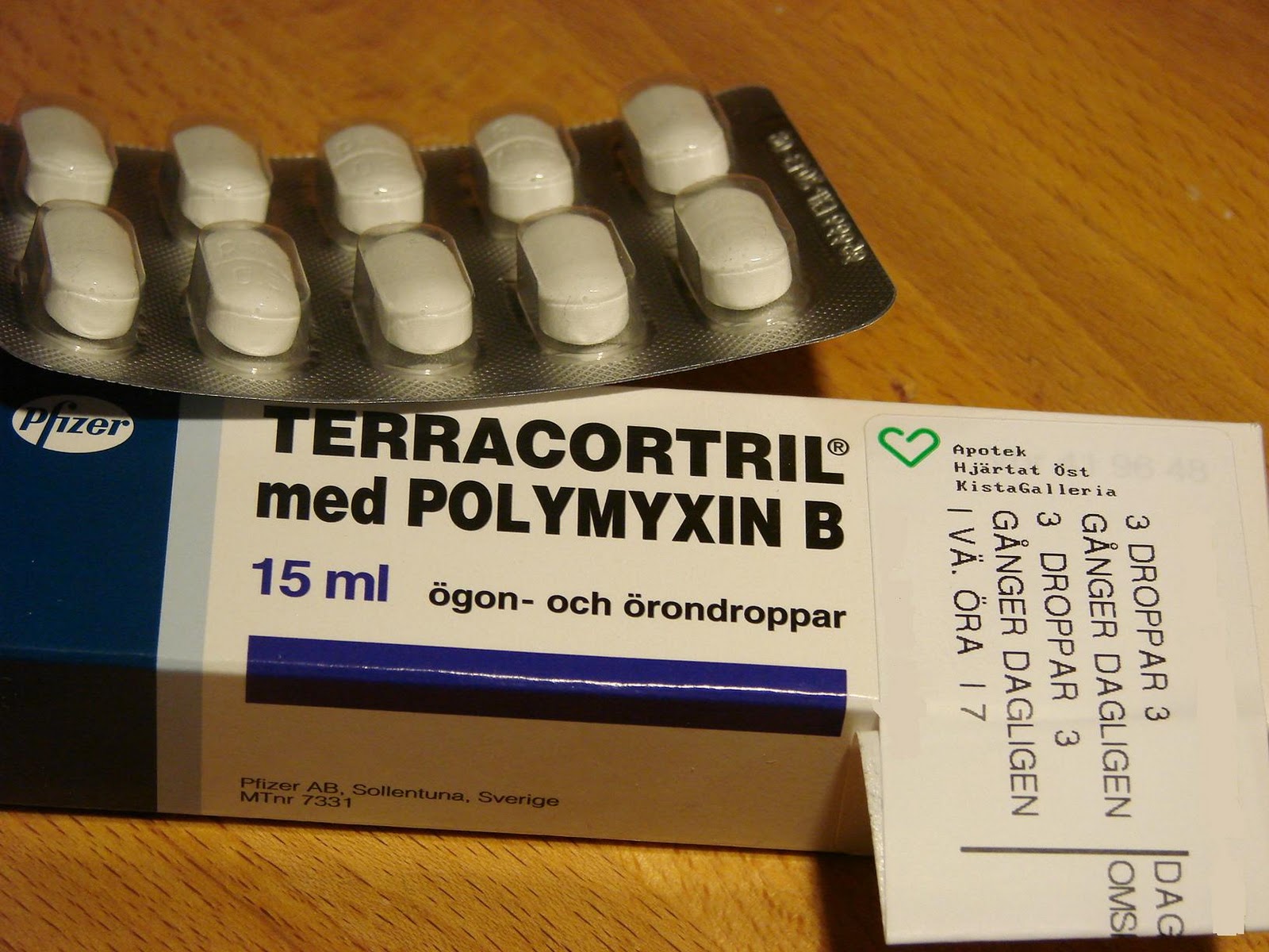 Kåvepenin i stor dos och droppar i örat, tre gånger dagligen.