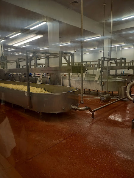I stora kar tillverkas de olika ostarna och vi lyssnade på en guidning som berättade om mejeriets historia och osttillverkningen här. Mjölken kommer enbart från gårdar i närheten, ingen annan mjölk används.